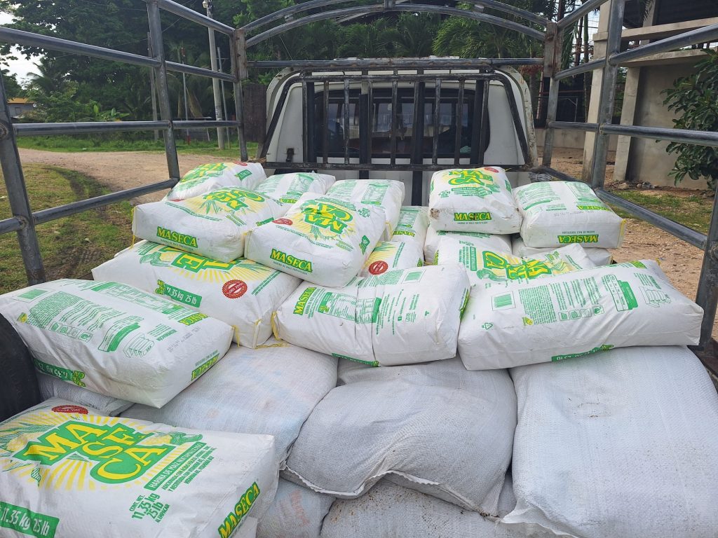 Estos son los productos que contiene cada ración de alimentos que recibirá cada niño beneficiario, y que están en estado de desnutrición, en aldea Tierra Blanca, Sayaxché, Petén. 06 bolsas de frijol negro de 05 Lbs. 02 bolsas de arroz blanco de 10 Lbs. 1 bolsa de harina de maíz nixtamalizada de 25 Lbs. 2 botellas de aceite vegetal de 800 ml. 3 bolsas de hojuelas de avena de 1kg 2 bolsas de azúcar de 2500 gr. 3 bolsas de harina de maíz y soya fortificada de 1.5