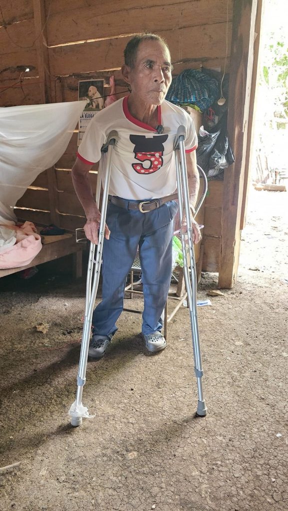 Alberto Quib, de aldea San Juan Acul, fue beneficiado con un par de muletas, entregado por la Oficina Municipal de Discapacidad, con las gestiones del señor alcalde Eduardo Ayala.